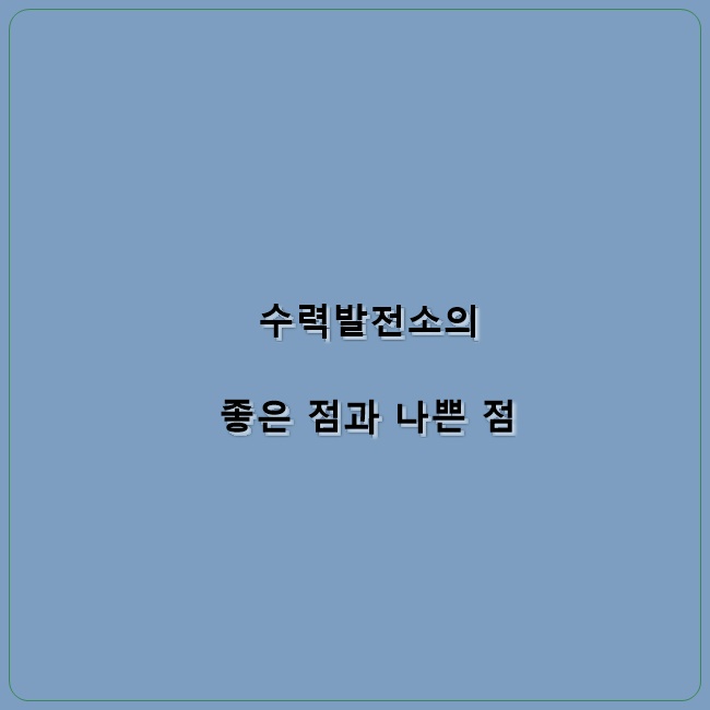 수력발전소의 좋은 점과 나쁜 점
